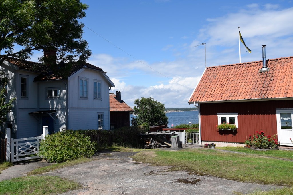 Vi kom till Sandhamn redan 11,50. Vi packade badkläder och gav oss ut på en promenad runt ön. Sandhamns by är väldigt fin, än så länge är den smått sliten och inte alls tjusig. Husen ligger lite huller om buller och även om det inte längre bor fiskare och lotsar i husen känns det genuint och härligt.