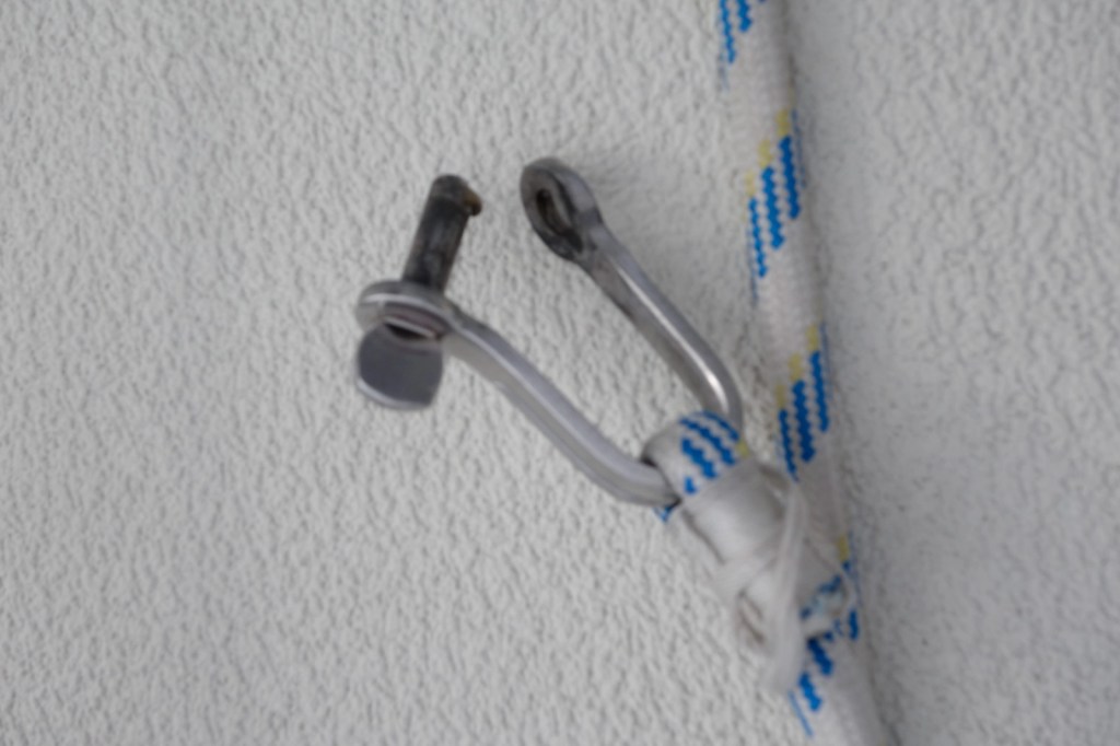 Vid trettontiden sa Erik att ha tyckte att vi skulle rulla in en del av, eller hela focken, eftersom han kände att vi hade mer segel än vi egentligen kunde använda. Vi bestämde att vi skulle göra det när det blev min tur att ta över rodret. Vi hade inte mer än precis hunnit byta plats med varandra så såg vi hur focken plötsligt fladdrade fritt. Skotet hade lossnat. Erik rullade in focken och tog åter säkerhetsselen och gick upp på däck. Det visade sig att det schackel som skotet är fästat i hade brutits upp och helt enkelt vikt sig. Konstigt att det ens kan hända.