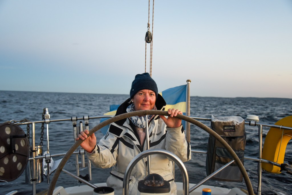 Det är intressant att vara på en båt så många timmar som vi nu varit vid ett par tillfällen; man märker liksom inte alls att tiden går. Man styr, slumrar lite, läser lite högt, äter ett kokt ägg och plötsligt har det gått 8 timmar.
