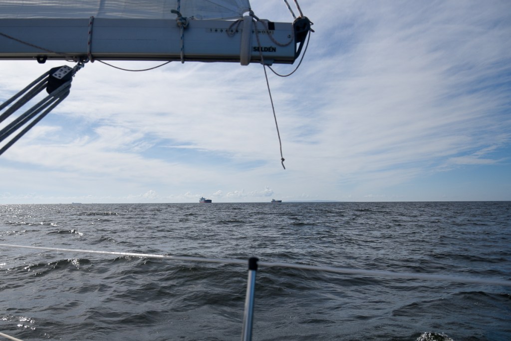 Vi såg inte många fartyg de första 10 timmarna och inte en enda segelbåt.