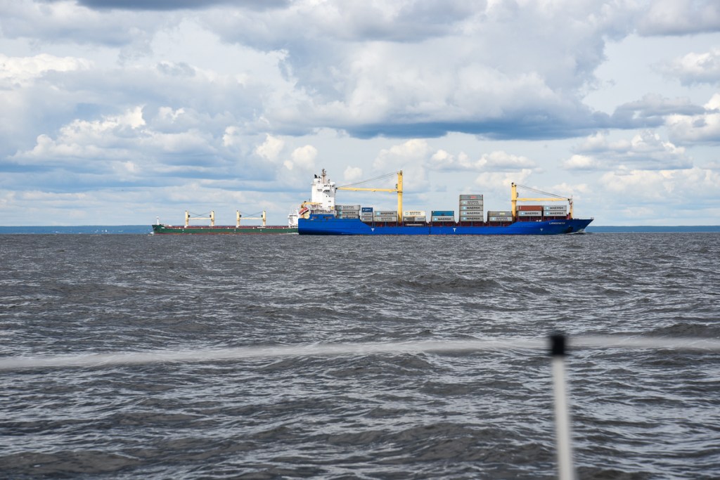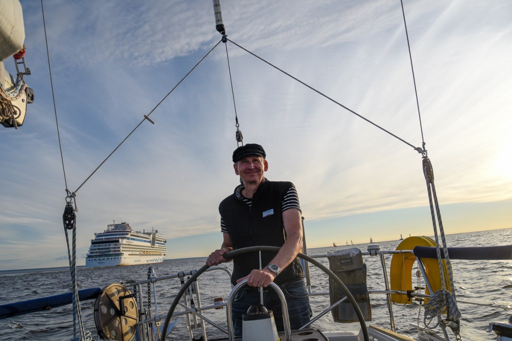 Vi hade fått instruktioner av Vladimir Ivankiv, vår ryska kontaktperson, att vi skulle hålla oss i södra kanten av den stora trafikseparationsleden som går genom Finska viken till St Petersburg. Vi hade lag ut waypoints och dragit en rutt mellan dem och den låg exakt på det södra strecket av farleden. Efter att en stund ha seglat utmed den blev vi anropade av ryska myndigheter och anmodade att flytta oss 10 grader söderut, vilket vi såklart gjorde. Tänk att de har koll på oss mitt ute på havet!