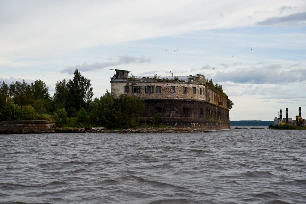 Från Kronstadt och in till St Petersburg ska man absolut inte förvänta sig någon vacker upplevelse. Det man ser är förfallna försvarsanläggningar, militärbåtar (vi såg två ubåtar ligga vid kaj), stora förortskomplex och hamnar. Jag tror inte vi såg en enda sak som fick oss att dra andan av förtjusning.