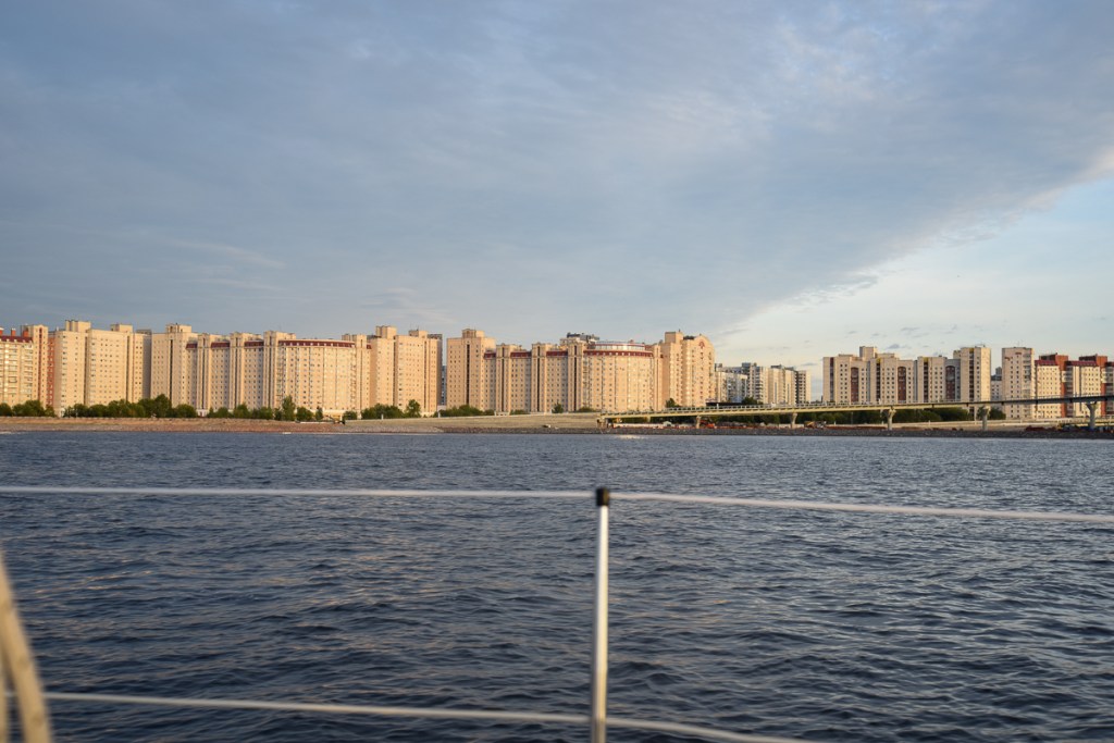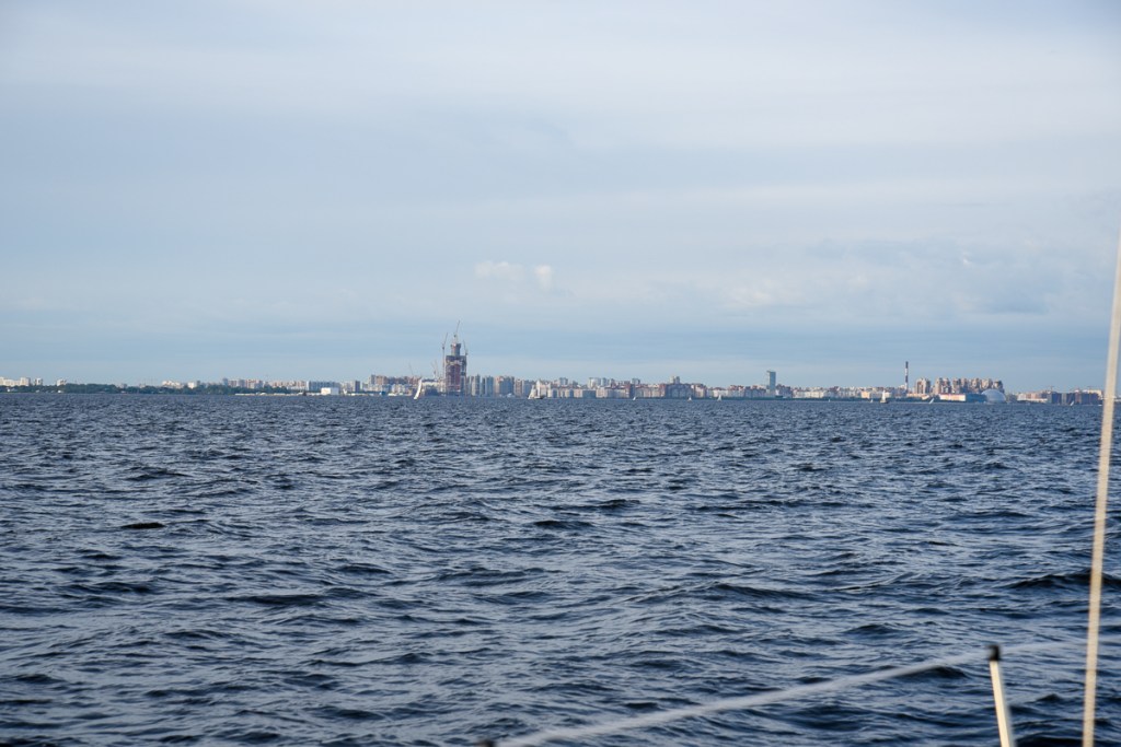 Det är mycket lätt att navigera och farlederna in till staden är tydligt utmärkta. Vi smsade Vladimir när vi hade klarerat ut. Eftersom vi sedan inte fick något svar ringde jag honom. Han sa att han samsat instruktioner om var vi skulle lägga oss när vi kom fram till båtklubben men det sms:et kom aldrig fram. Varför vi inte kunde ta emot sms i Ryssland vet vi inte men det gick bara om och när vi hade wifi. Vladimir frågade om hur hög vår mast var och fick till svar att det då inte var någon fara. Vi förstod först inte frågan för vi hade inte läst om eller sett någon bro när vi studerat inseglingen till St Petersburg.