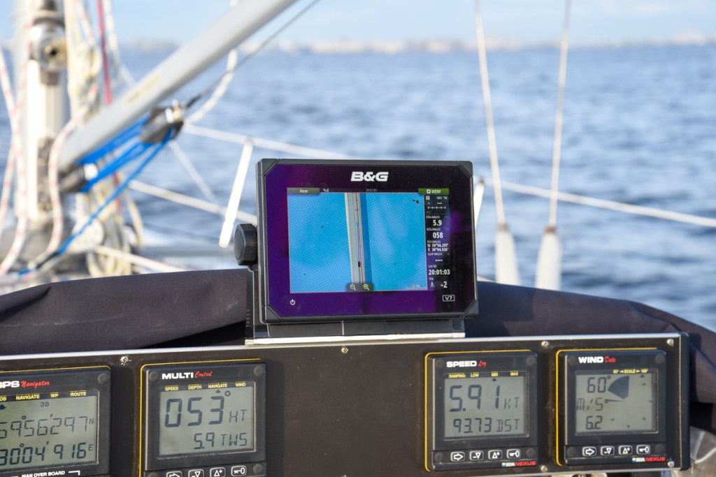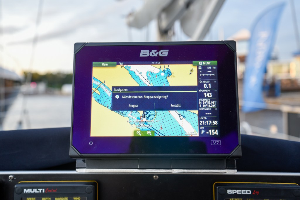 Vi är mycket glada för att vi har skaffat AIS som både sänder och tar emot. Att vi sänder är ju bra, eftersom vi då syns tydligt och att vi kan ta emot information om andra båtar gör att det är lättare att bedöma om och var vår kurs kommer att korsa ett annat fartygs väg. Man vill ju gärna vara långt från 137 meters tankfartyg.