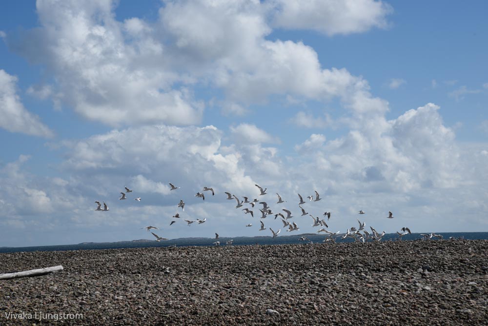 Sjöfåglar på Jurmos grusiga stränder.