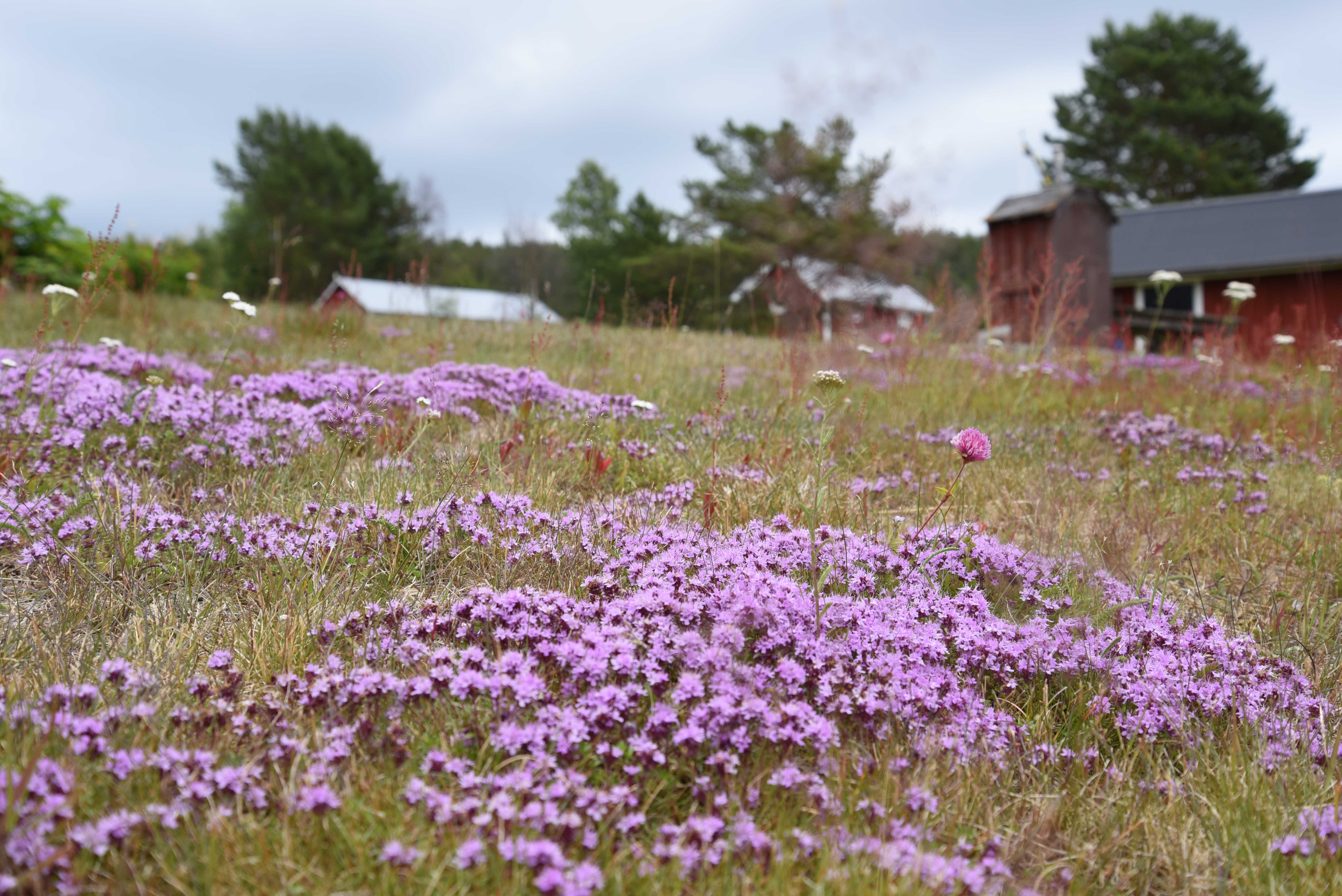 Numera ser man till att hålla marken ren på gistvallarna på samma sätt och blomningen i denna näringsfattiga mark är makalöst fin. Vi ser otroligt många blommande växter i byn. Den lilla röda berggsyran Rumex acetosella ger karaktär åt hela det lilla samhället.