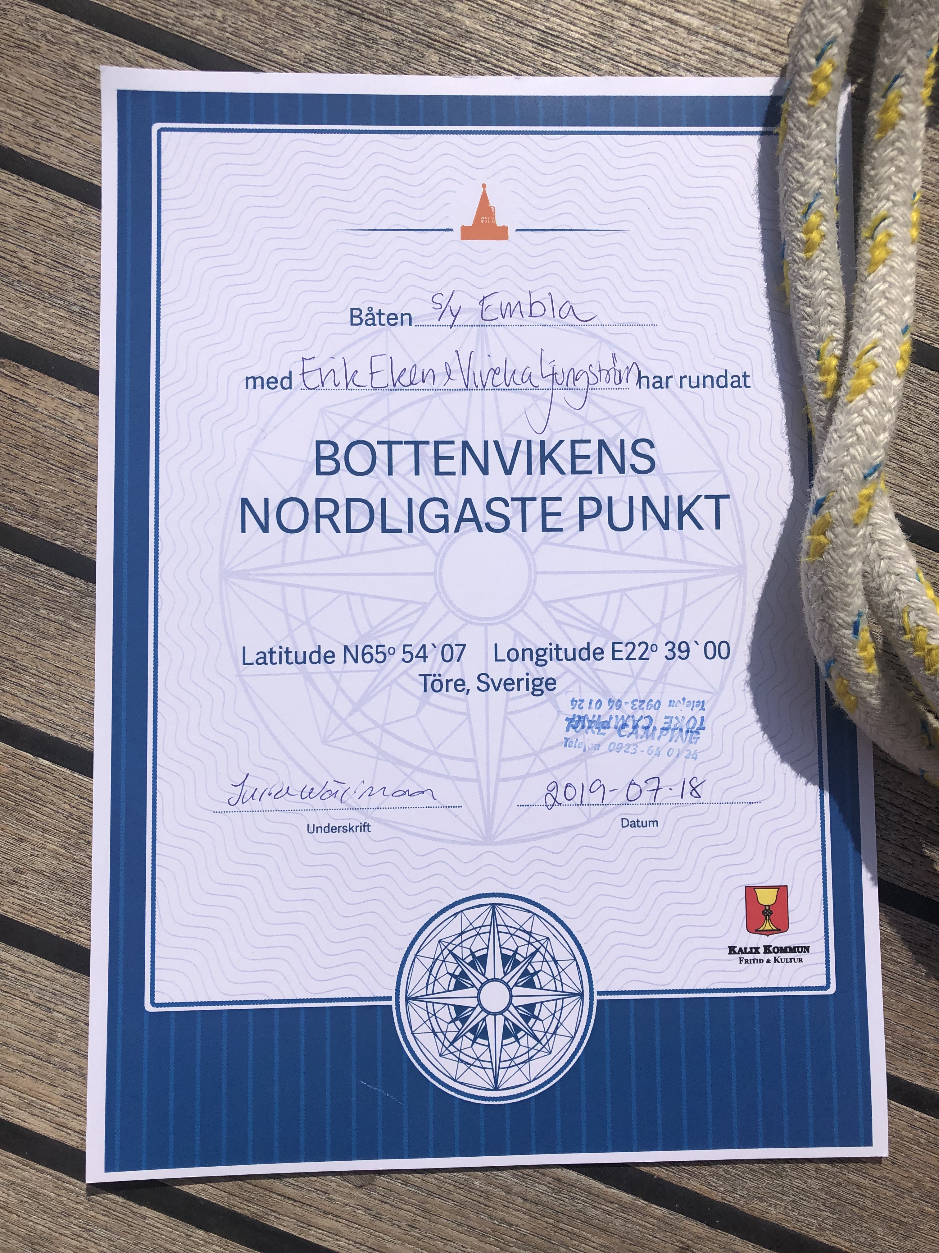 1. Hej, kul att läsa om nordligaste punkten! Har tidigare läst att det är grunt i Töre och trott att det inte funkar med vår båt som går 2.30m. På sjökortet ser det ju helt ok ut på utsidan där ni låg. Vågar vi tro på att vi kan runda bojen och stanna för natten?