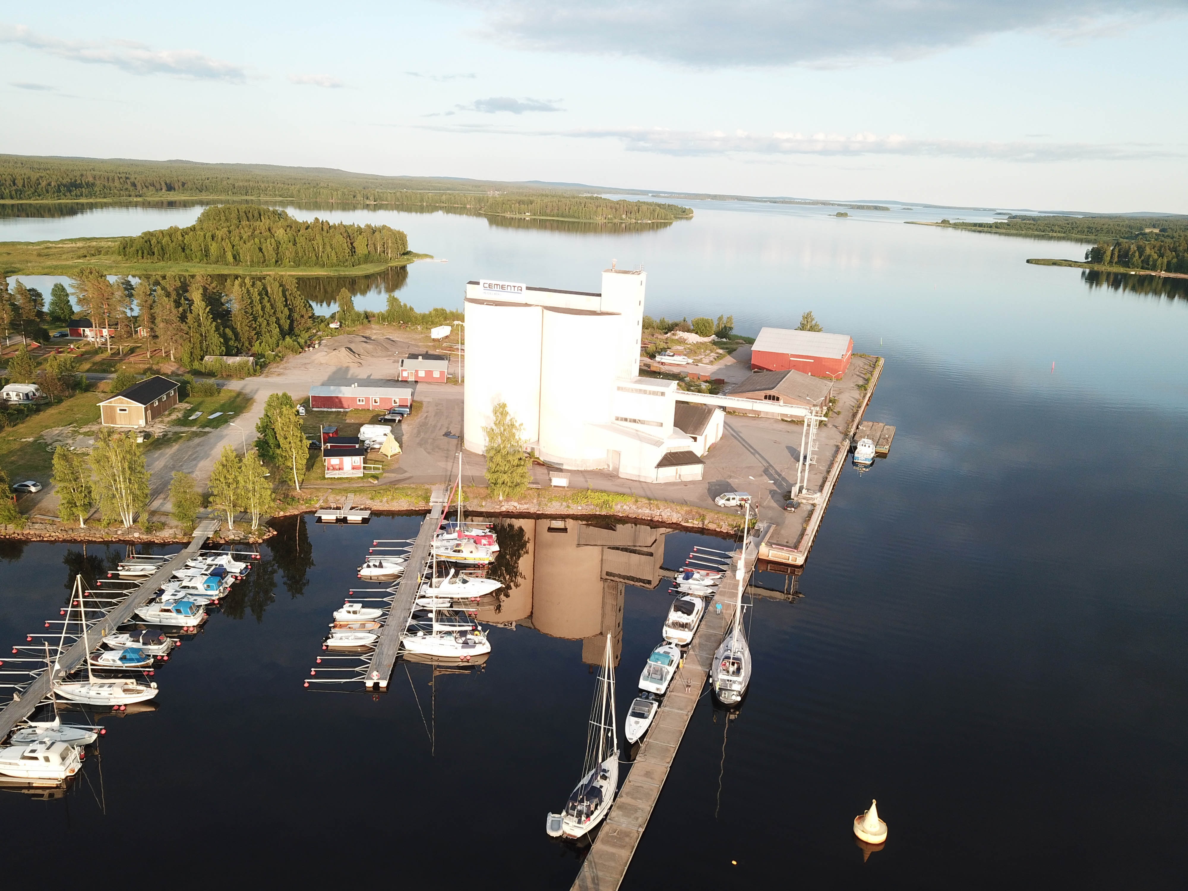 De stora silosarna för cement i hamnen ägs av Heidelberg group som numera äger Cementa. De används inte längre, till denna Sveriges nordligaste djuphamn kommer inte längre några stora fartyg. Men ägarna vill inte sälja silosarna till någon annan av rädsla för att få konkurrens från andra betong- och cementbolag. Som så ofta utmed den norrländska kusten finns minnen kvar från en annan tid och rester från när de andra har dragit vidare.
