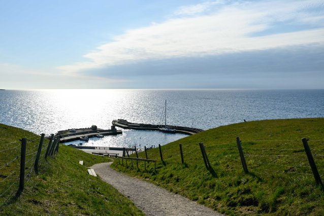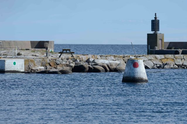 Även Kåseberga är ett ställe vi har velat komma till men hittills har aldrig väder och vindar varit rätt. Men den här gången stämmer allt. Vi är ensamma i hamnen och vädret är kanonfint. Trots det känner man hur svallen liksom suger ut vattnet ur hamnbassängen på när svallen från färjorna till Bornholm rullar in. Vi är glada för att det är relativt stilla.
