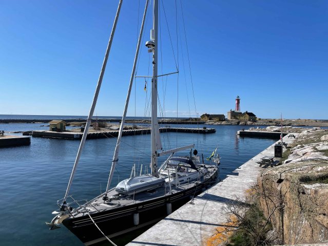 Jag fyller år och Erik bjuder på tårta till frukost – en riktig favorit. Vi får en fin segling till Utklippan och när vi kommer in i den mycket lilla hamnbassängen är vi helt ensamma.