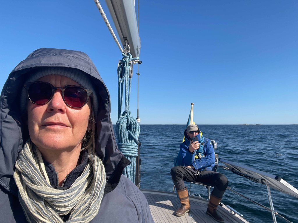 Vi seglar på, mellan 40 och 80 distans varje dag. Det är klart, soligt och vi har fina vindar men det är lite vårkallt så underställ, mössa och vantar är på varje dag. Jag drömmer om en vindtät mössa.