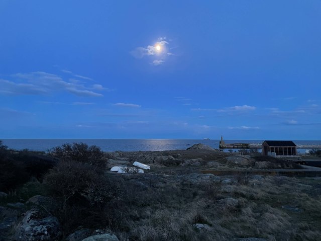 Utklippan är precis så fint som vi har hoppats på och vi får se både växter, djur och vacker fyr – vad mer kan man önska? En solnedgång och fullmåne kanske? Det får vi också.
