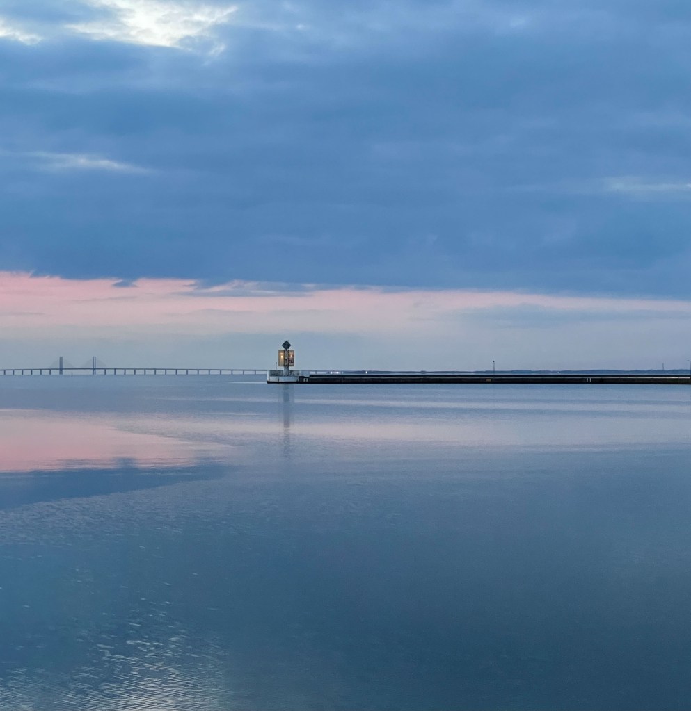 Sist vi gick runt Sveriges sydspets seglade vi runt Falsterbonäste och Måskläppen så denna gång bestämmer vi oss för att i stället går genom Falsterbo kanal. Bron öppnas på bestämda tider så man måste vara lite bra på att tajma tiden för att inte behöva ligga för länge och vänta – eller missa, det är inte många minuter de håller öppet. Vi tar natthamn i Skanörs gästhamn och får en fin skymning ut över Öresund.