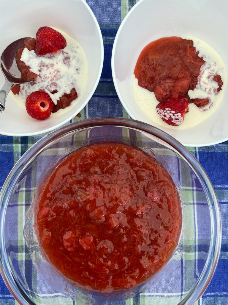 Våra dagar i Henån är trivsamma. Vi umgås med våra holländska vänner och har gott om tid att laga mat och koka kräm och annat gott på säsongens jordgubbar och rabarber.