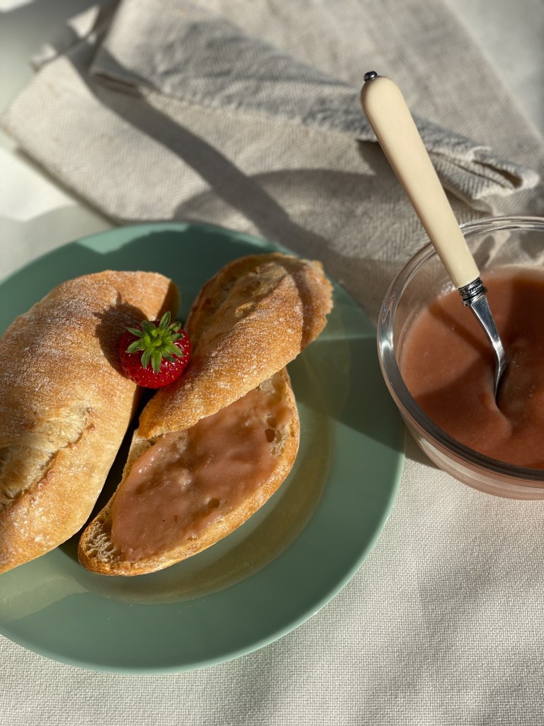 Vi provade också att koka curd – som i lemoncurd – på rabarber. Mycket gott som pålägg. Man kan ha den i tårta, servera den med maränger, jordgubbar och glass eller som en del i en svenskinspirerad tiramisu. Men allra godast är den att bre på macka. Recept finns här.