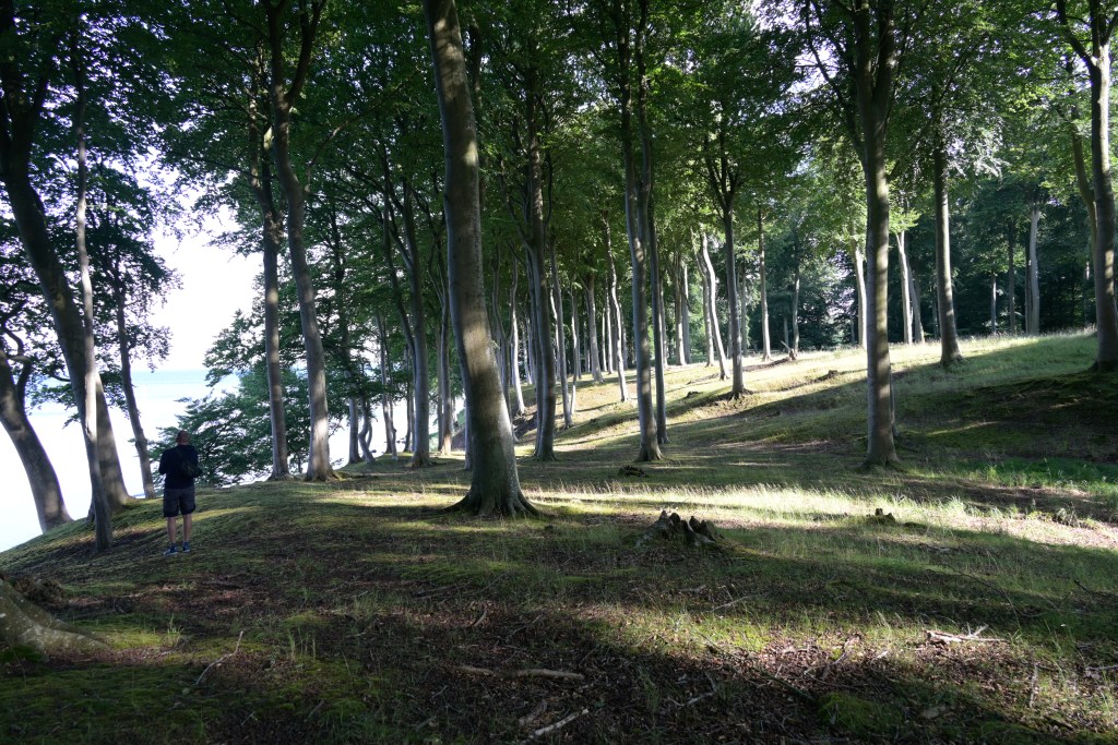 Æbelø är en privatägd ö och i Danmark finns inte allemansrätt på samma sätt som i Sverige så det är inte självklart att man får gå iland överallt. Mn hit är alltså besökare välkomna att vandra i den fina bokskogen och på de böljande ängarna. Förr fanns här jordbruk och fiske men sedan många år är ön obebodd. Det står att läsa att man numera låter naturen sköta sig själv och kanske är det de många hjortarna som håller marken öppen. Vi ser många hjortar som verkar ganska orädda.