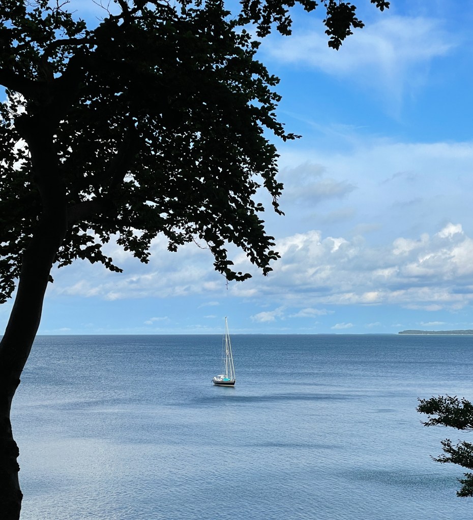 För oss är det en relativt ny erfarenhet att släppa ankaret i lä av en ö, utan skyddande vik att krypa in i. Men i Danmark är det väldigt vanligt och eftersom det oftast är sandbotten får man fint fäste.