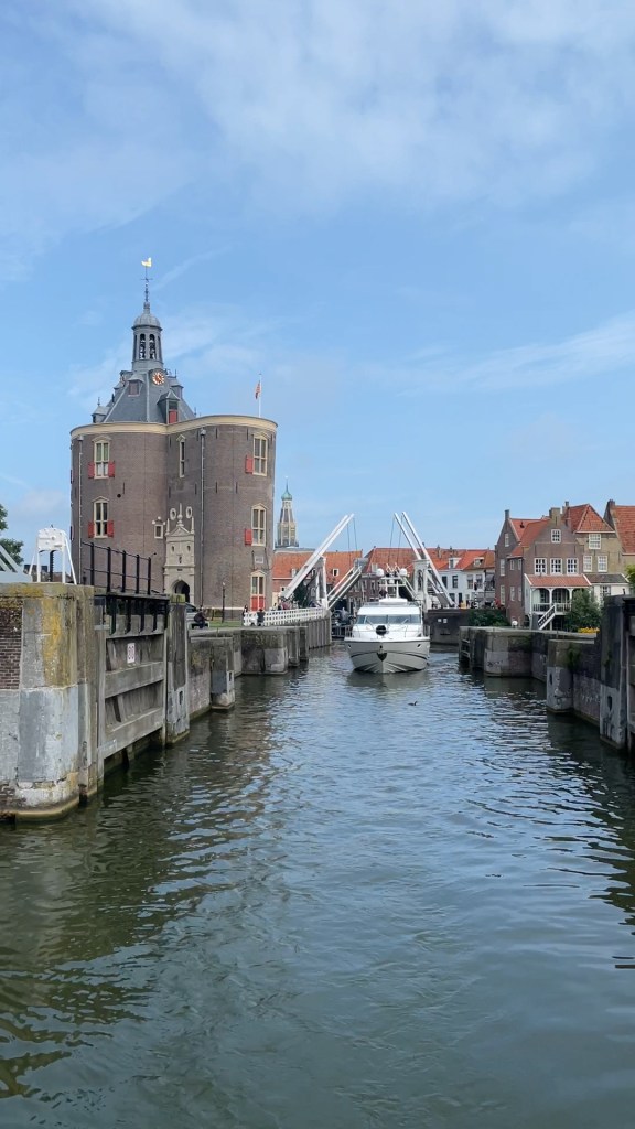 Många som vi talar med har Enkhuizen som sin absoluta favoritstad och visst är den fin och väl värd besväret, trots broöppningar och trängsel med stora skutor. Gästhamnen ligger mitt i staden och man har nära till det mesta. Det finns flera bra bagerier för den som vill köpa färskt bröd på morgonen. Systemet för el och vatten är dock så krångligt att vi inte orkar lista ut hur det fungerar och våra solceller ger oss tillräckligt med ström.
