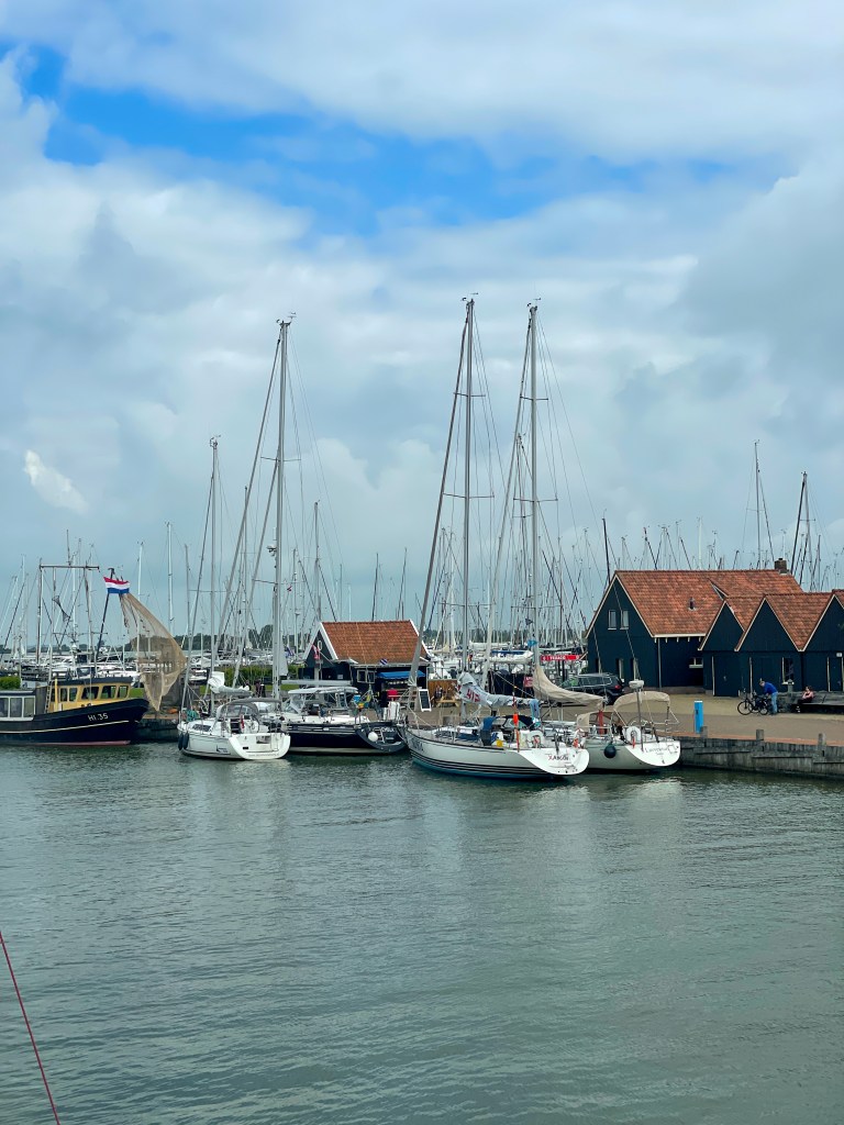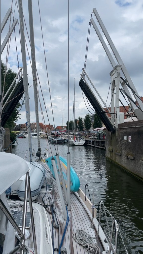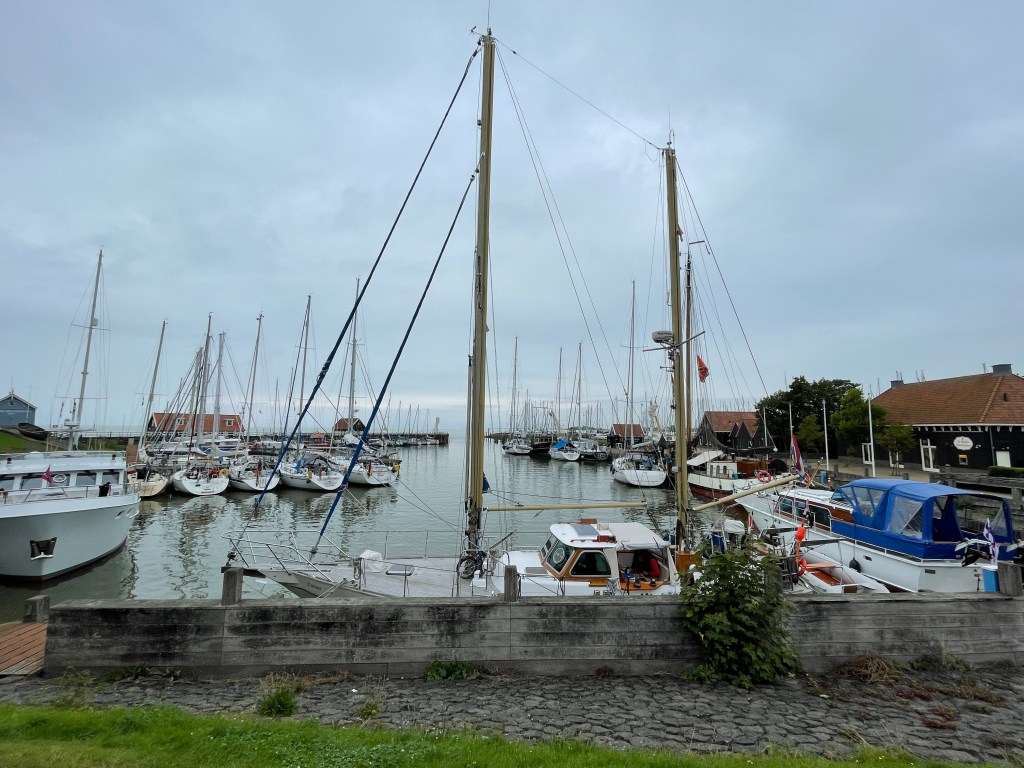 Från Harlingen går vi till Hindeloopen och det betyder att vi slussar in i Ijsselmeer. Vi är glada och tacksamma över att inte behöva segla med paraply, det regnar ganska ofta.