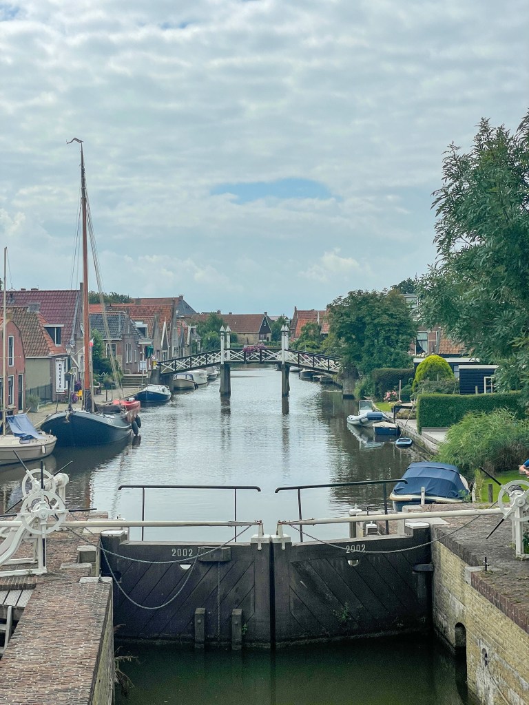 Hindeloopen är den första staden efter att man har passerat Lorentzsluizen in i Ijsselmeer. Den är supergullig med sitt rutnät av söta kanaler, kantade med bostadshus och välskötta trädgårdar. Alla hus i centrala Hindeloopen har en sida mot kanalen. För inte alls länge sedan var båt det vanligaste sättet att transportera sig i Nederländerna, även inne i landet som har ett mycket stort kanalsystem.