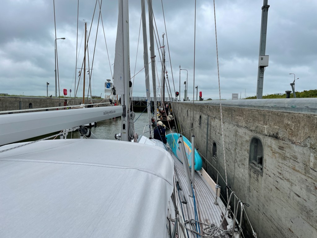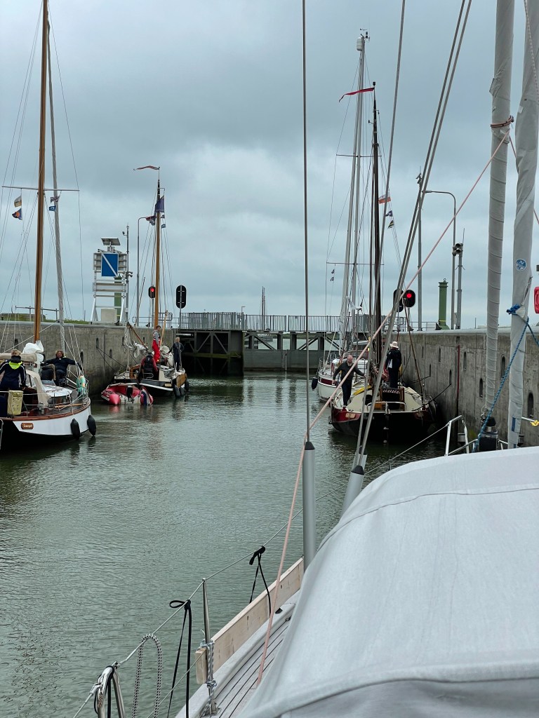 Efter fyra slussar börjar vi förstå konceptet och rutinerna. Trängsel fick vi ju prova på redan i Terschelling där man leker Tetris med alla båtar som ska komma in i hamnen och varje morgon genomför stor omflyttning eftersom de som ligger längst in är de som har legat längst och oftast vill ge sig av först. När vi går in i Ijsselmeer känner vi att vi har börjat få koll på både signaler och linor. Eftersom vi är här rätt sent på säsongen är det sällan trångt.
