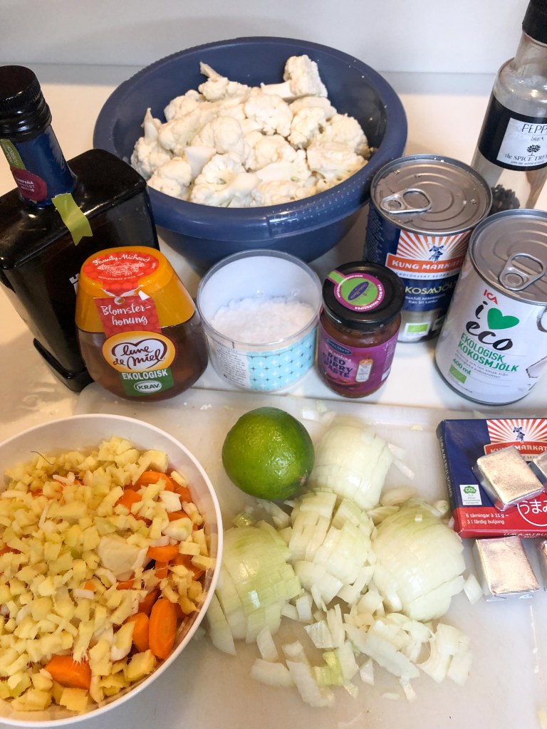 - 0,5 kruka färsk koriander – vi brukar strunta i det men om man gillar det så är det nog väldigt gott till.