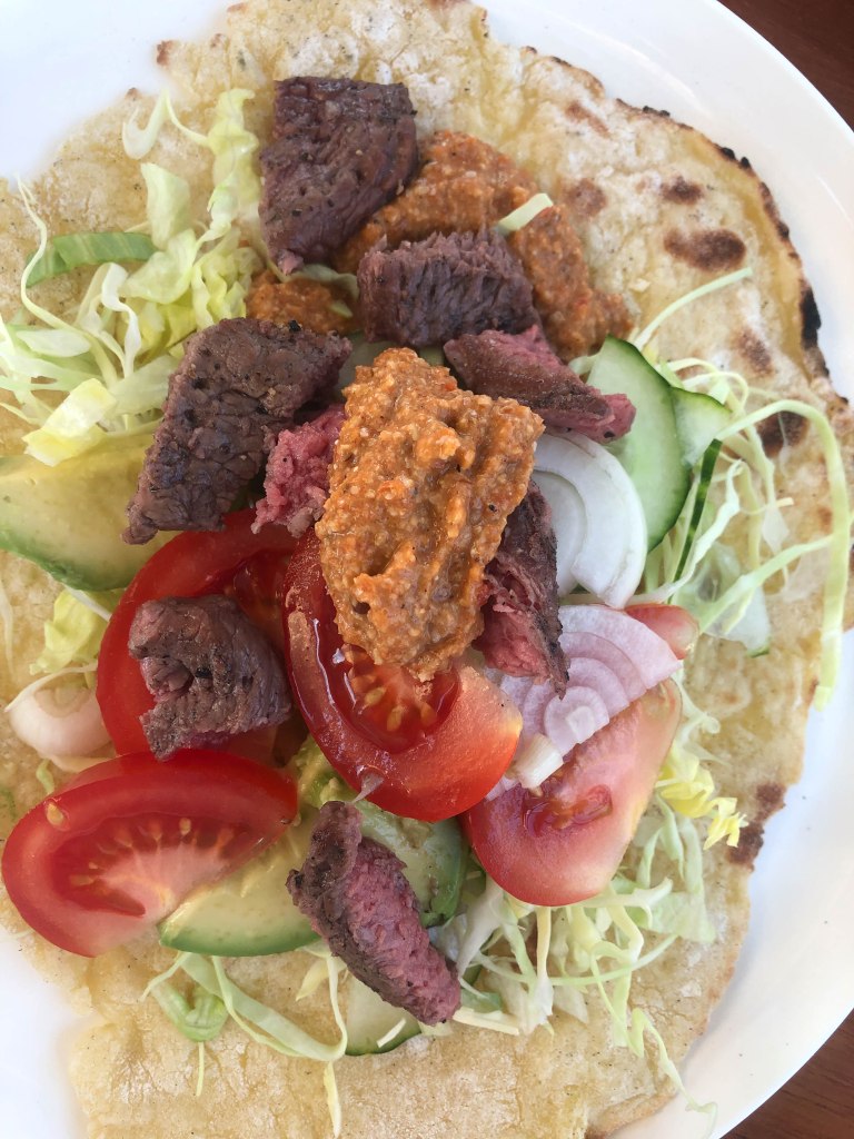 Lägg på fyllning och rulla ihop till smarriga rullar. En riktigt god röra till grillat kött får man om man mixar grillad paprika med dukkah.